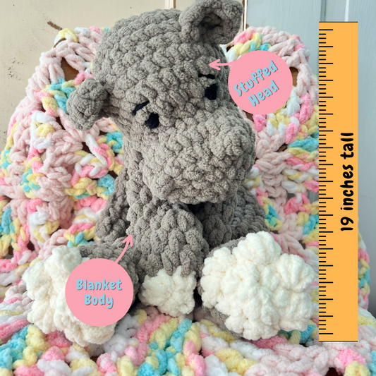 Hippo Lovey Toy Handmade Plush Cuddly. Soft & squishy Hippo plushie.